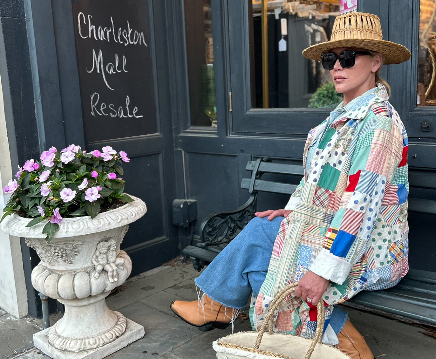 Ronda Yonce, creative force behind the BACKATCHA, native South Carolinian, is a fashion industry veteran and vintage aficionado. She found that her retail and design experience helped her reimagine found textiles into beautiful, upcycled one-of-a-kind coats. Made in Charleston with vintage textiles, each coat pays homage to her home city, where the colors, architecture and intersection of old and new world serve as daily inspiration. Ronda works in luxury, vintage retail and seasonally in commercial agriculture retail, selling peaches throughout the summer months all over upstate, SC.