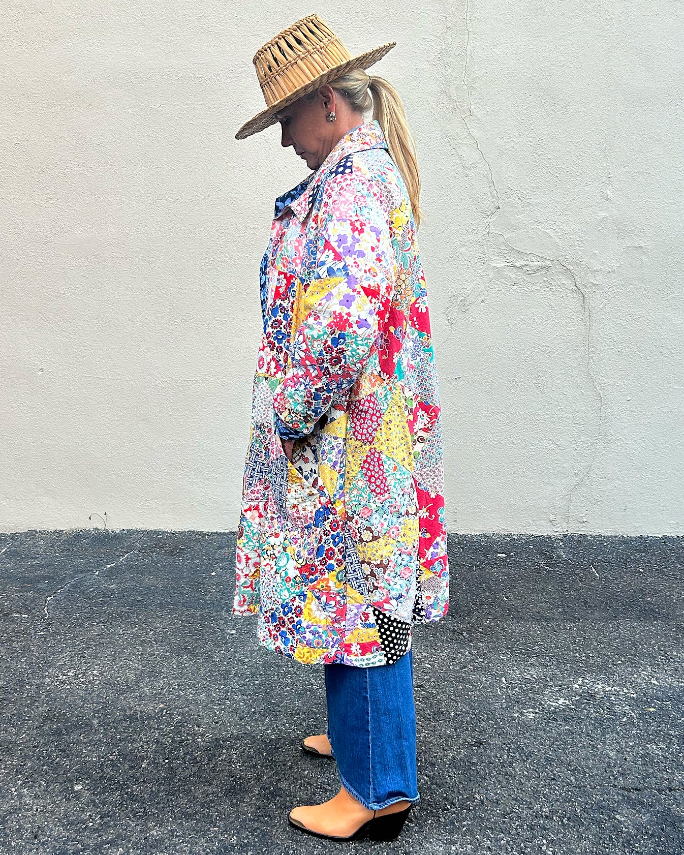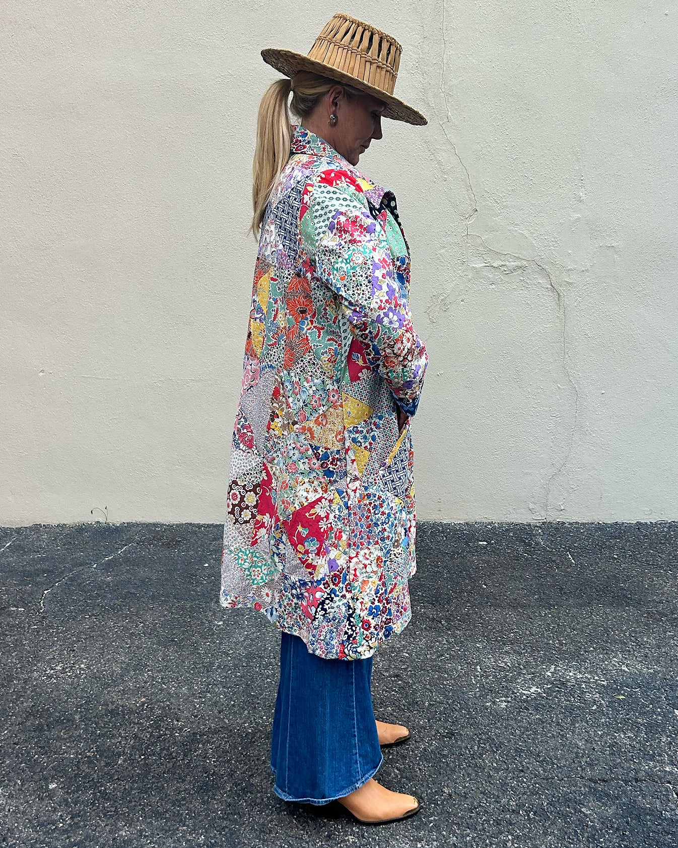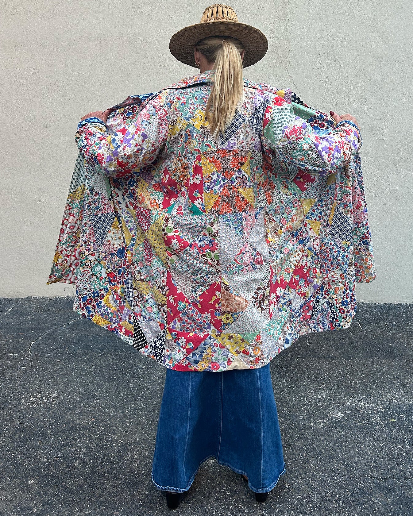 Model is a size 6/8. One size fits most. Standard shipping included. Contact us for more details. As this is a one-of-a-kind item, all sales are final.