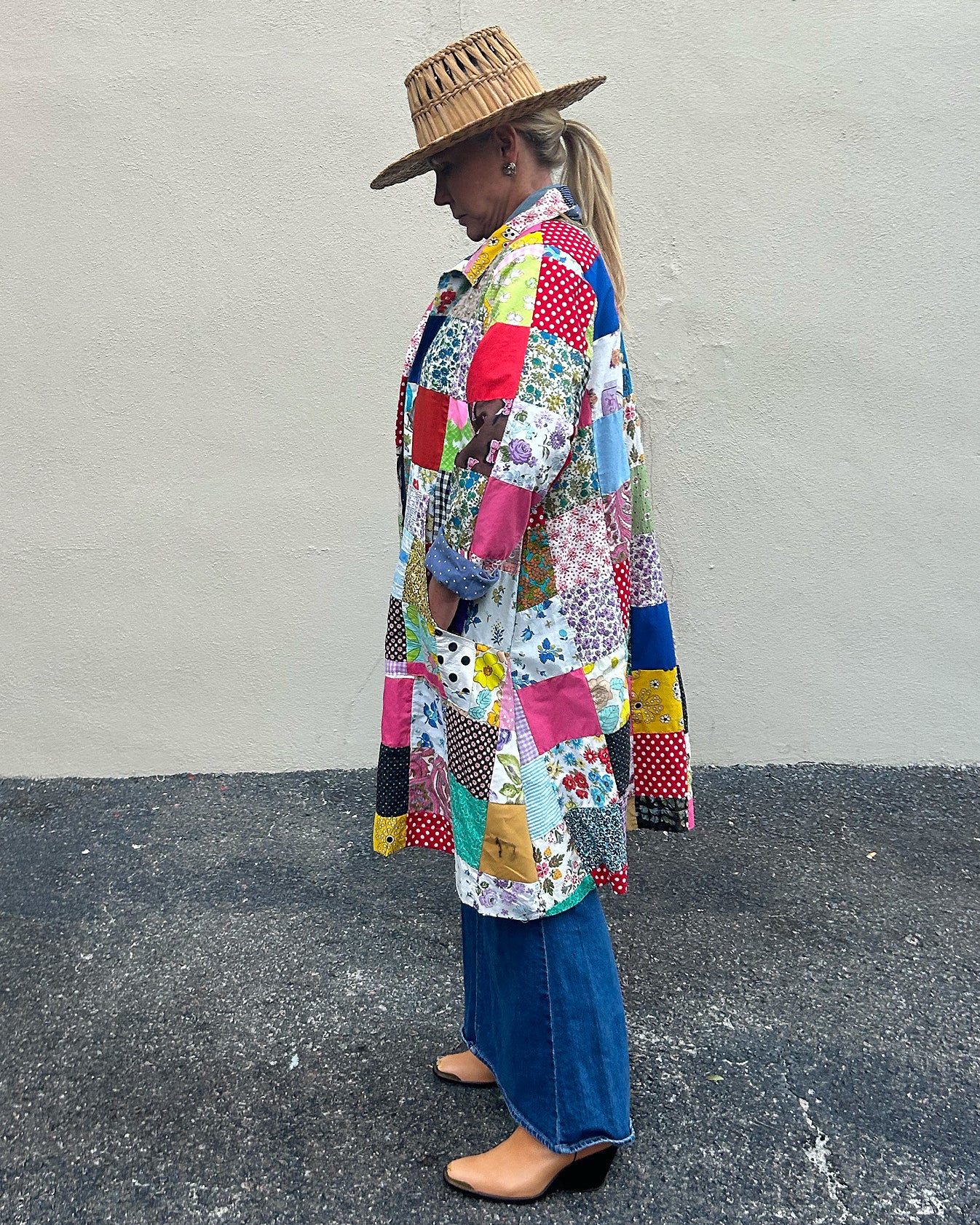 Model is a size 6/8. One size fits most. Standard shipping included. Contact us for more details. As this is a one-of-a-kind item, all sales are final.