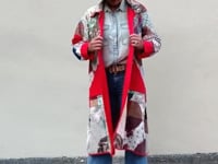 Model is a size 6/8 and 5’7”. One size fits most. Standard shipping included. Contact us for more details. As this is a one-of-a-kind item, all sales are final.