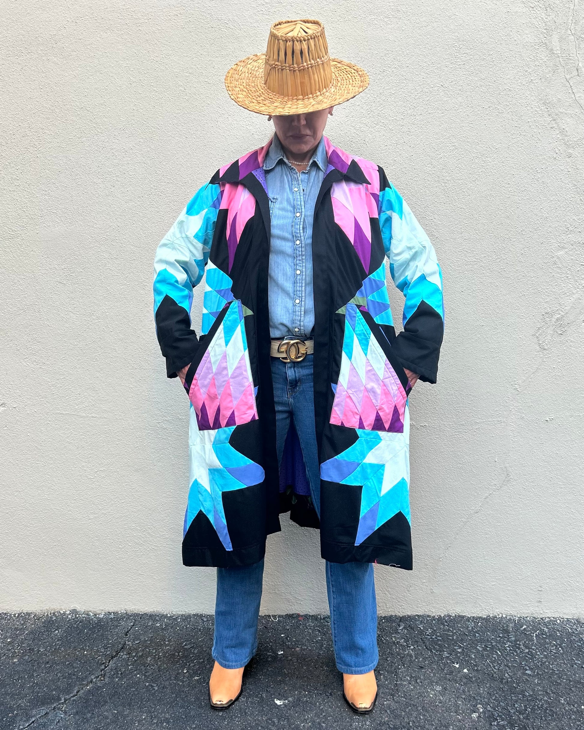 Model is a size 6/8. One size fits most. Standard shipping included. Contact us for more details. As this is a one-of-a-kind item, all sales are final.