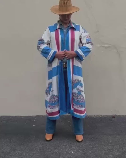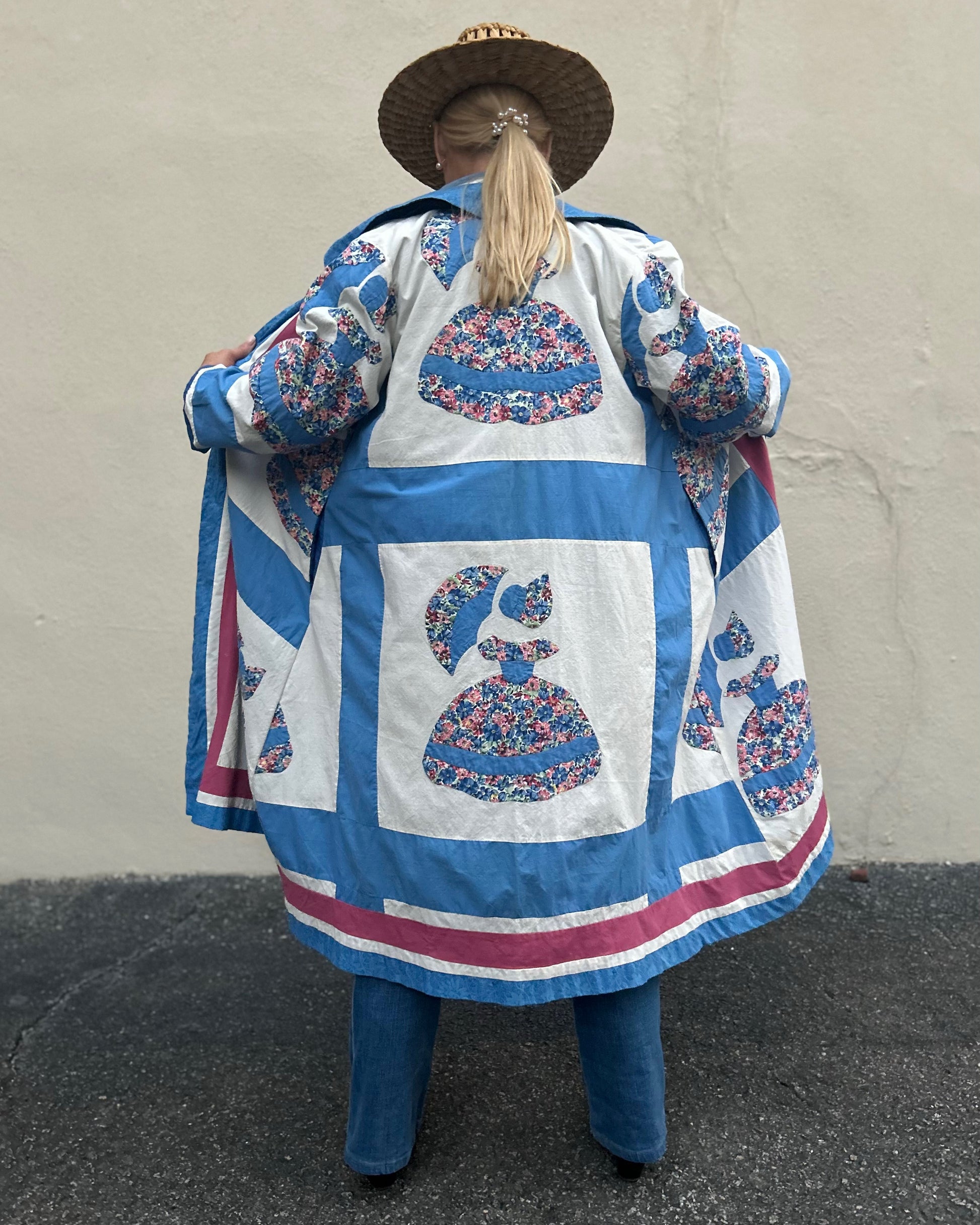 Model is a size 6/8. One size fits most. Standard shipping included. Contact us for more details. As this is a one-of-a-kind item, all sales are final.
