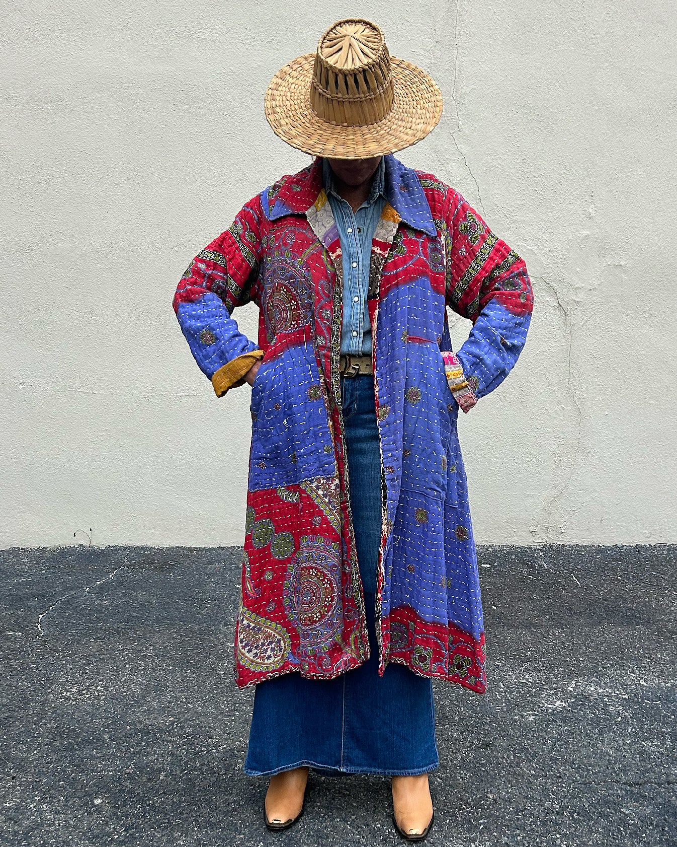 Model is a size 6/8. One size fits most. Standard shipping included. Contact us for more details. As this is a one-of-a-kind item, all sales are final.