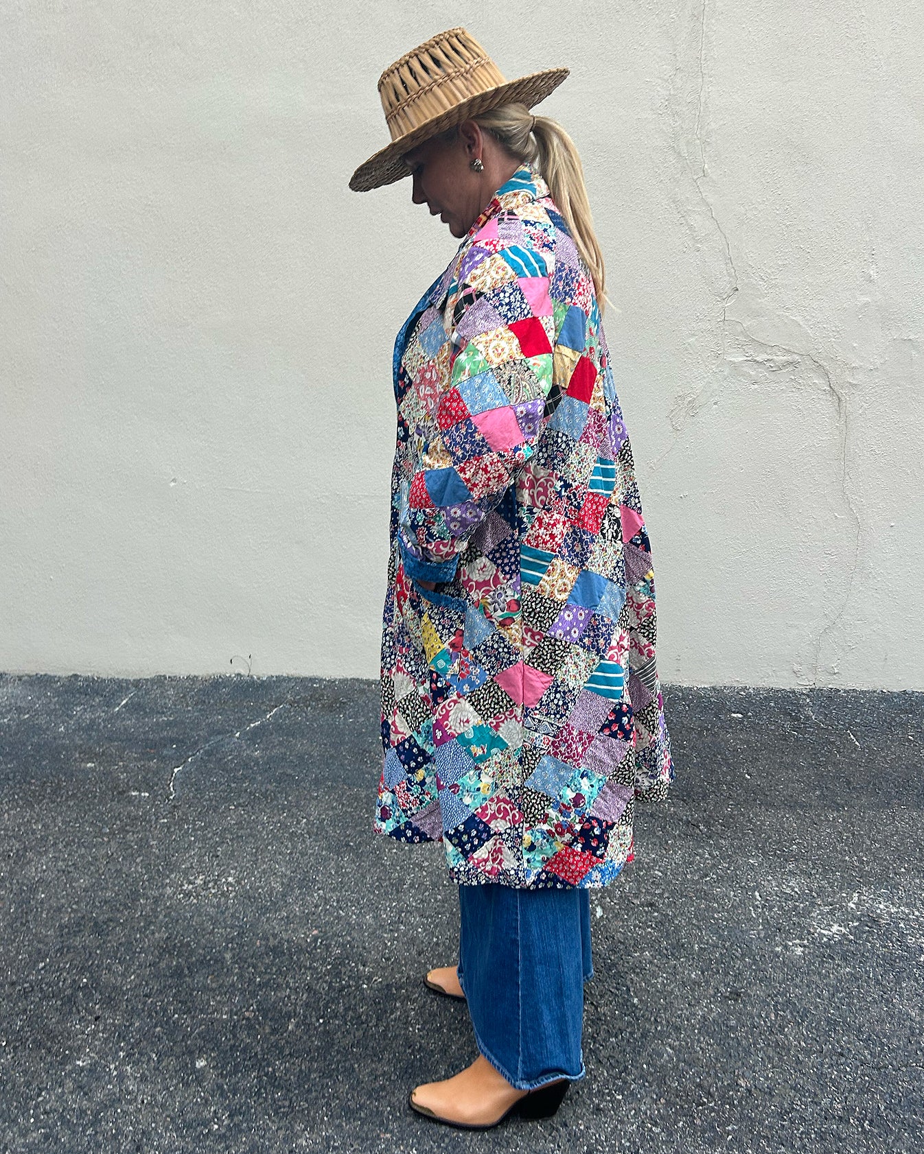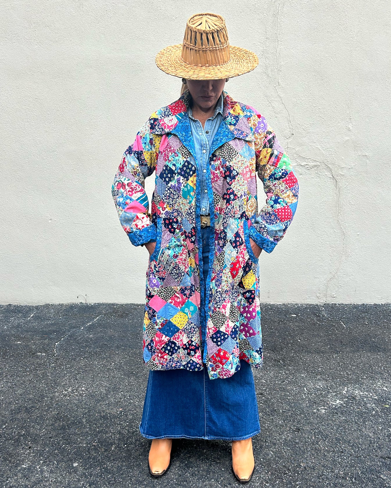 Model is a size 6/8. One size fits most. Standard shipping included. Contact us for more details. As this is a one-of-a-kind item, all sales are final.