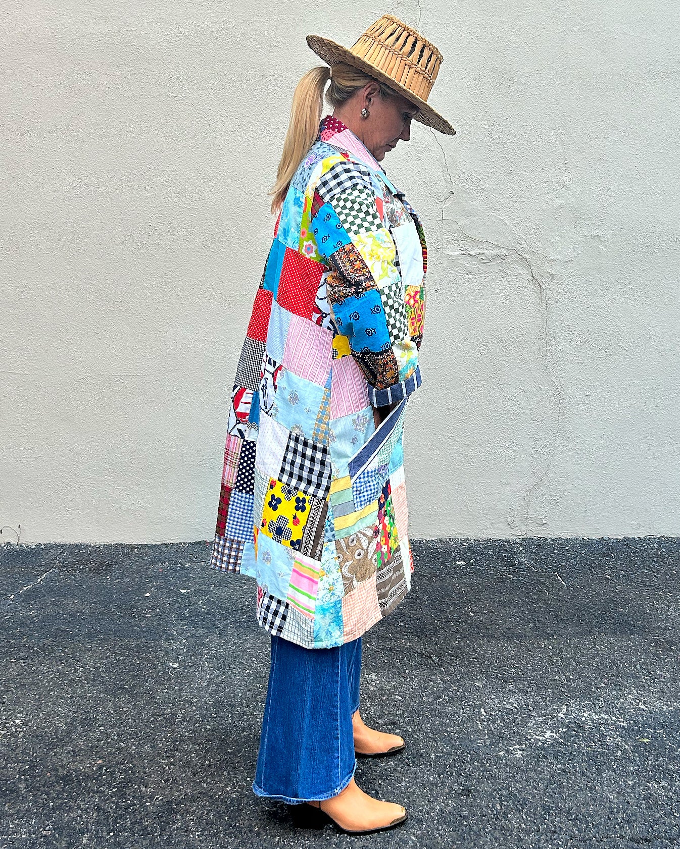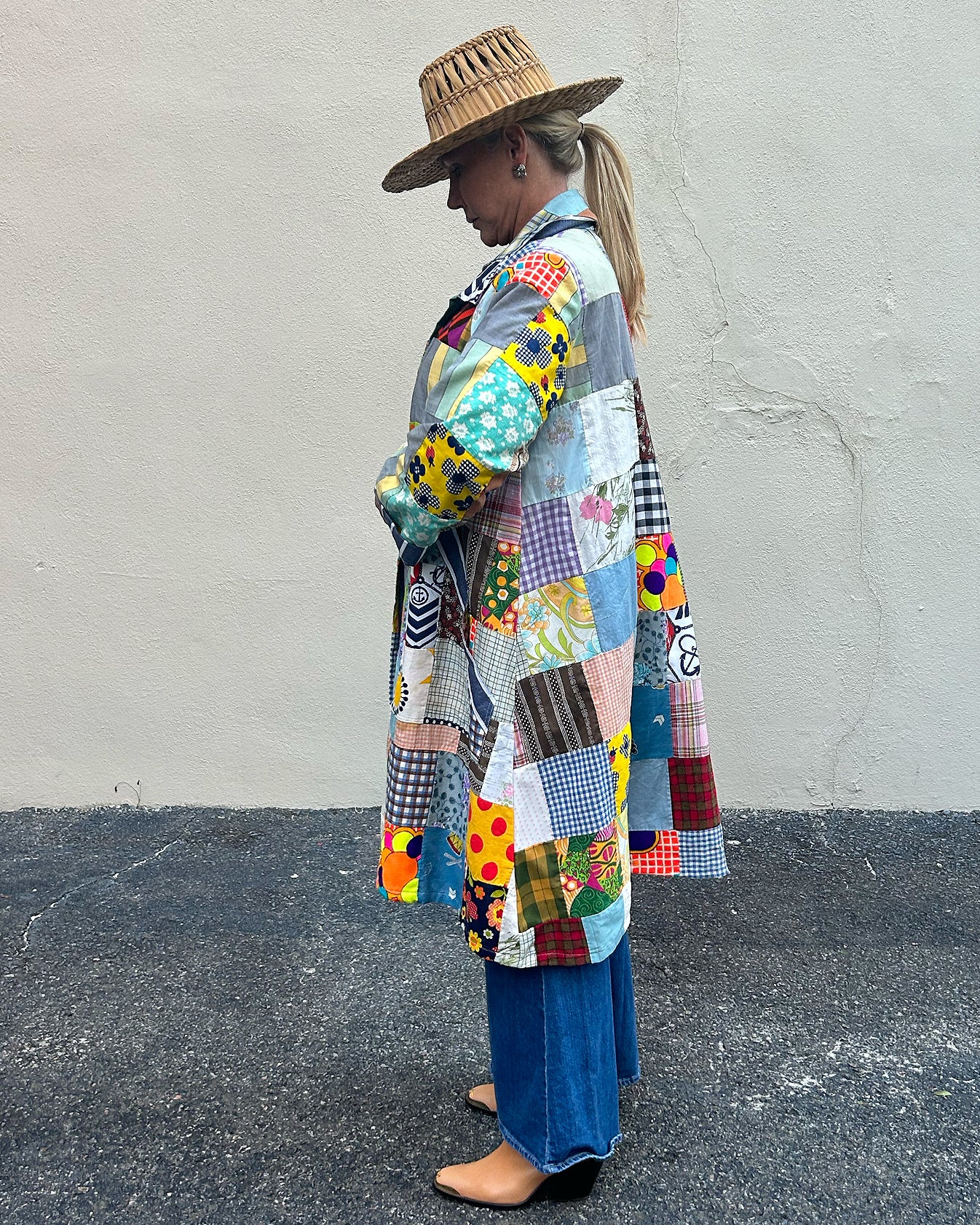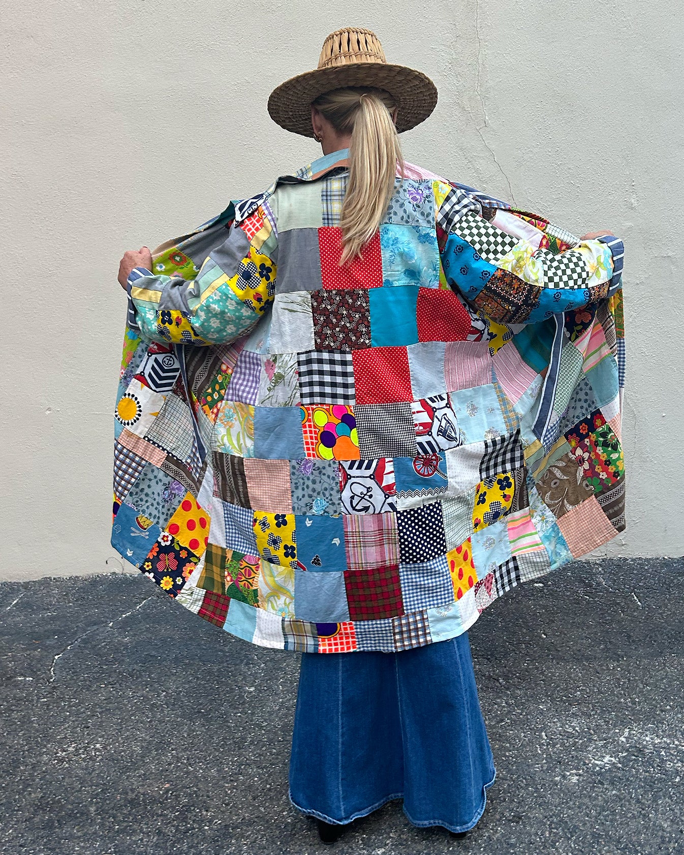 Model is a size 6/8. One size fits most. Standard shipping included. Contact us for more details. As this is a one-of-a-kind item, all sales are final.
