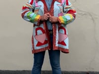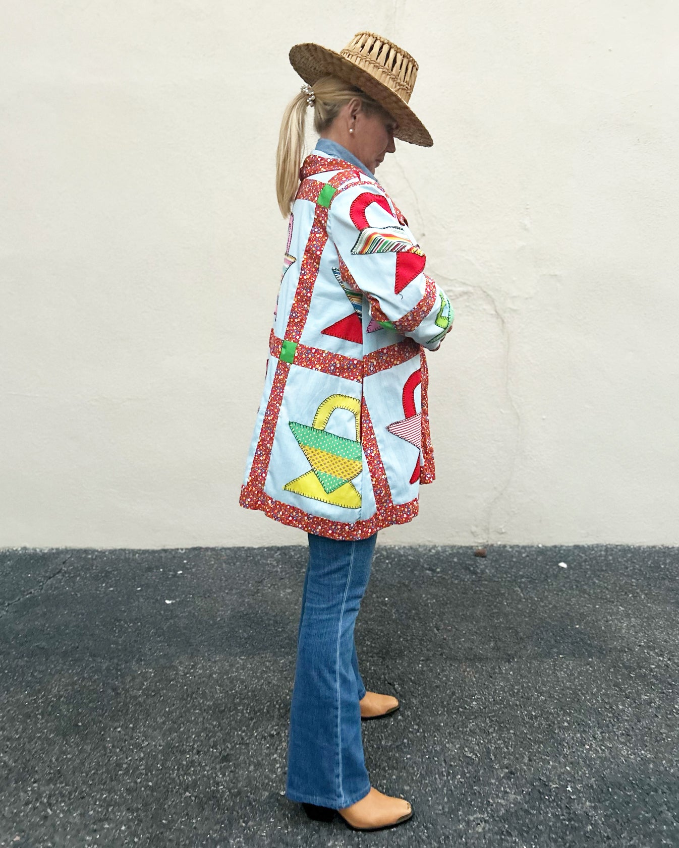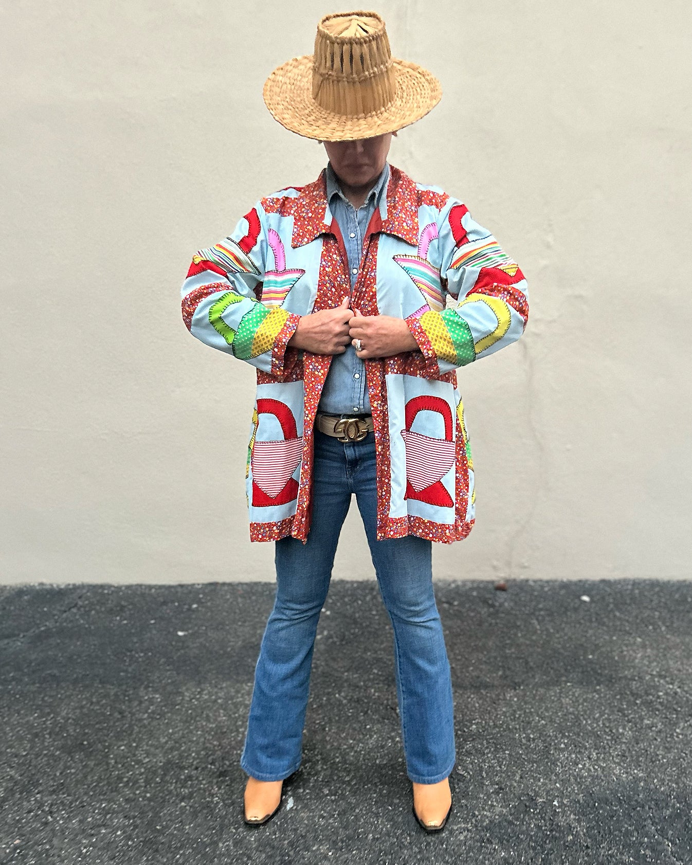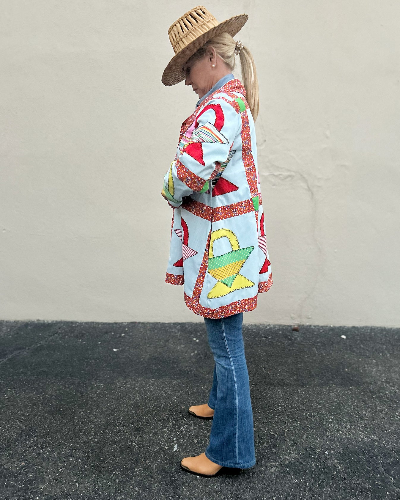 Model is a size 6/8 and 5’7”. One size fits most. Standard shipping included. Contact us for more details. As this is a one-of-a-kind item, all sales are final.