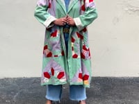 Model is a size 6/8 and 5’7”. One size fits most. Standard shipping included. Contact us for more details. As this is a one-of-a-kind item, all sales are final.